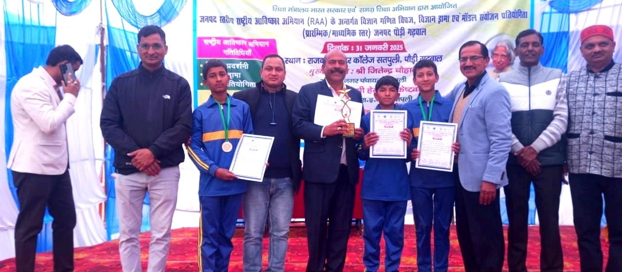 सतपुली, पौड़ी गढ़वाल. आदर्श इंटर कालेज सतपुली में शिक्षा मंत्रालय भारत सरकार तथा समग्र शिक्षा अभियान के संयुक्त तत्वावधान में राष्ट्रीय अविष्कार अभियान के अंतर्गत गणित – विज्ञान क्विज, विज्ञान ड्रामा एवं मॉडल संयोजन (प्रारंभिक एवं माध्यमिक) की जिलास्तरीय प्रतियोगिताऐं संपन्न हुई। इन प्रतियोगिताओं में प्रारंभिक तथा माध्यमिक की 15 विकासखंडों की टीमों ने भाग लिया । गणित – विज्ञान क्विज प्रारम्भिक में विकास क्षेत्र नैनीडांडा से राजकीय उच्च प्राथमिक विद्यालय मुस्याखांद के प्रधानाध्यापक गबर सिंह बिष्ट के नेतृत्व में आई टीम ने पहला स्थान प्राप्त किया। इस टीम में अक्षित रावत, अंशु रावत और पीयूष कंडारी थे। यह प्रतियोगिता छः राउण्ड में संपन्न हुई । गबर सिंह बिष्ट ने बताया कि पिछले वर्ष भी उनकी विद्यालय की टीम ने इस प्रतियोगिता में पहला स्थान प्राप्त किया था । उनकी टीम के छह बच्चों में से 5 ने डॉ शिवानन्द नौटियाल छात्रवृत्ति,NMMSS राष्ट्रीय छात्रवृत्ति तथा श्रीदेव सुमन छात्रवृत्ति में भी सफलता प्राप्त की है। इस विद्यालय से इसी वर्ष कक्षा 6 में अध्ययनरत 6 शिक्षार्थियों ने मुख्यमंत्री मेधावी छात्रवृत्ति में सफलता प्राप्त की। श्री बिष्ट ने बताया कि हर वर्ष उनके विद्यालय से शिक्षार्थी छात्रवृत्ति की परीक्षा में सफलता प्राप्त कर रहे है। इन्ही सफलताओं के आधार पर उन्हें वर्ष 2019 में राज्यपाल पुरस्कार तथा 2021 में राज्य शैलेश मटियानी शैक्षिक उत्कृष्टता पुरस्कार से भी सम्मानित किया जा चुका है।