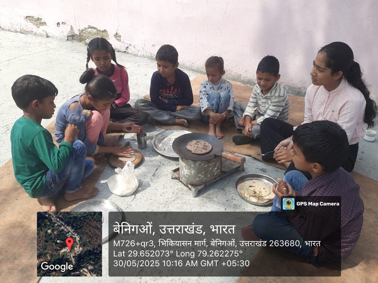 उत्तराखंड, अल्मोड़ा। भारतीय भाषा समर कैम्प के चौथे दिवस पर समर कैम्प केन्द्र – राजकीय आदर्श प्राथमिक विद्यालय – बासोट ( भिकियासैण) में बच्चों ने विभिन्न गतिविधियाँ की। समर कैम्प की शुरुआत सभी बच्चों द्वारा गढ़वाली वंदना और सूक्ष्म योगाभ्यास से की गई । इसके बाद एससीईआरटी उत्तराखंड से तय की गई गतिविधि के अनुसार सन्दर्भदाता शिक्षकों की सहायता से बच्चों ने गढ़वाली व्यंजन बनाये। सभी प्रतिभागी बच्चों को 5 समूहों में बाँटा गया। प्रथम समूह ने चावल (भात), दूसरे समूह ने कड़ी (झोली) , तीसरे समूह ने चावल की खीर चौथे समूह ने गेहूँ व मडुवे की रोटी व पाँचवें समूह ने आलू -टमाटर की सब्जी तैयार की। बच्चों के इन व्यंजनों को बनाने में मुख्य सन्दर्भदाता के रूप में कृपाल सिंह शीला , दयाशंकर गिरी और ठाकुर पाल सिंह ने कार्य किया। चौथे दिवस पर मुख्य अतिथि सामाजिक कार्यकर्ता दीपक करकेती द्वारा बच्चों को गढ़वाली भाषा और व्यंजनों की विस्तार से जानकारी दी गई । गढ़वाली व्यंजन बनाने ने सभी समूहों के बच्चों ने बहुत रुचि दिखायी। हर समूह से एक दो बच्चों ने इन व्यंजनों को बनाने की विधि को भी सभी बच्चों के साथ साझा किया। याशिका ने खीर बनाने,मोहित ने चावल(भात) बनाने, अनमोल ने दाल बनाने व माही ने गेहूँ व मडुवे की रोटी बनाने व बबीता ने कड़ी (झोली) बनाने की विधि के साथ अपने अनुभव भी साझा किये गये। प्रत्येक समूह द्वारा बनाये गये इन व्यंजनों का स्वाद मंचस्थ अतिथि व सन्दर्भदाता शिक्षकों के साथ बच्चों ने भी लिया। समर कैम्प में 36 बच्चों की प्रतिभागिता रही।