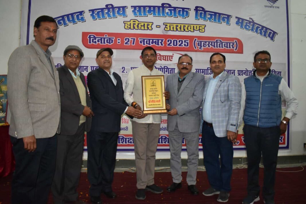 जिला शिक्षा एवं प्रशिक्षण संस्थान हरिद्वार, रुड़की में जनपद स्तरीय सामाजिक विज्ञान महोत्सव का आयोजन किया गयाI शिक्षा विभाग, उत्तराखंड की एक अभिनव पहल के अंतर्गत समग्र शिक्षा एवं राज्य शैक्षिक अनुसंधान एवं प्रशिक्षण परिषद, उत्तराखंड के संयुक्त तत्वावधान में नवाचार कार्यक्रम के रूप में पहली बार सामाजिक विज्ञान महोत्सव का आयोजन किया जा रहा हैI कार्यक्रम का शुभारंभ मुख्य अतिथि वीरेंद्र जाती, विधायक झबरेड़ा, दीपक रामचंद्र सेट ज्वाइंट मजिस्ट्रेट रुड़की, अभिषेक शुक्ला खंड शिक्षा अधिकारी रुड़की, मनोज किशोर बहुगुणा सदस्य राष्ट्रीय शिक्षा नीति प्रकोष्ठ, एस.सी.ई.आर.टी. उत्तराखंड, कैलाश डंगवाल प्राचार्य जिला शिक्षा एवं प्रशिक्षण संस्थान रुड़की, डॉ अशोक सैनी, वरिष्ठ प्रवक्ता डायट रुड़की, भूपेंद्र सिंह कार्यक्रम प्रभारी और डॉ संतोष कुमार चमोला जिला सामाजिक विज्ञान समन्वयक ने माँ सरस्वती के चित्र पर पुष्प अर्पित कर किया गयाI डीएलएड प्रशिक्षुओं ने सरस्वती वंदना के माध्यम से मां सरस्वती का वंदन एवं नमन कियाI आयोजन समिति जनपद स्तरीय सामाजिक विज्ञान महोत्सव के सदस्यों के द्वारा मुख्य अतिथि विशिष्ट अतिथि और आगन्तुक अतिथियों का पुष्प गुच्छ भेंट तथा शाल भेंट कर स्वागत किया गयाI सभी मार्गदर्शक शिक्षकों, निर्णायकों और अन्य अतिथियों का बैज अलंकरण कर उनका स्वागत किया गयाI मूलराज कन्या इंटर कॉलेज रुड़की की छात्राओं द्वारा सभी आगंतुकों का स्वागत गान से अभिनंदन किया गयाI जिला सामाजिक विज्ञान समन्वयक डॉ. संतोष कुमार चमोला ने सामाजिक विज्ञान महोत्सव के बारे में बताया कि राष्ट्रीय शिक्षा नीति 2020 के अनुसार शिक्षा प्रणाली का उद्देश्य अच्छे मनुष्य का विकास करना है जो विचारों और कार्य करने में सक्षम हो और जिसमें सहानुभूति, साहस, लचीलापन, वैज्ञानिक स्वभाव, रचनात्मक कल्पना का भाव, अच्छे नैतिक विश्वास और मूल्य विद्यमान हों। सामाजिक विज्ञान महोत्सव के माध्यम से विभिन्न स्तरों पर सामाजिक विज्ञान विषय की उपादेयता तथा उपयोगिता को जन-जन तक पहुंचाने का प्रयास किया जा रहा है। कार्यक्रम के अंतर्गत विभिन्न स्तरों जैसे- विद्यालय स्तर, संकुल स्तर, विकासखंड स्तर, जनपद स्तर तथा प्रदेश स्तर पर सामाजिक विज्ञान महोत्सव का आयोजन किया जा रहा हैI राजकीय बालिका इंटर कॉलेज गुलाब शाहपीर की छात्राओं ने सांस्कृतिक कार्यक्रम प्रस्तुत कियाI जिला शिक्षा एवं प्रशिक्षण संस्थान हरिद्वार, रुड़की में कार्यक्रम के प्रभारी भूपेंद्र सिंह ने बताया इस कार्यक्रम के अंतर्गत जनपद स्तर पर तीन प्रमुख विधाओं में प्रतियोगिताएं आयोजित हो रही है तथा इन प्रतियोगिताओं में प्रथम स्थान प्राप्त करने वाले विद्यार्थियों द्